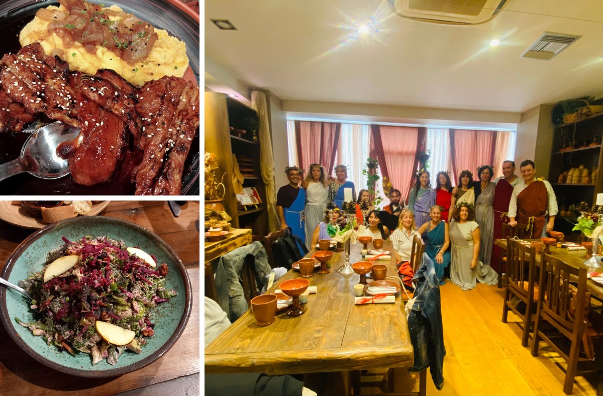 Frente a este impresionante conjunto de templos descubrimos que Atenas lleva este nombre en homenaje a la diosa Atenea, nacida de la cabeza de Zeus. Esta diosa regaló a los ciudadanos de Atenas un olivo que trajo gloria y felicidad a la ciudad que desde entonces lleva su nombre. Después de visitar la Acrópolis pudimos degustar un antiguo almuerzo griego, con música y bailes típicos de la época, vestidos como los antiguos habitantes de la ciudad.